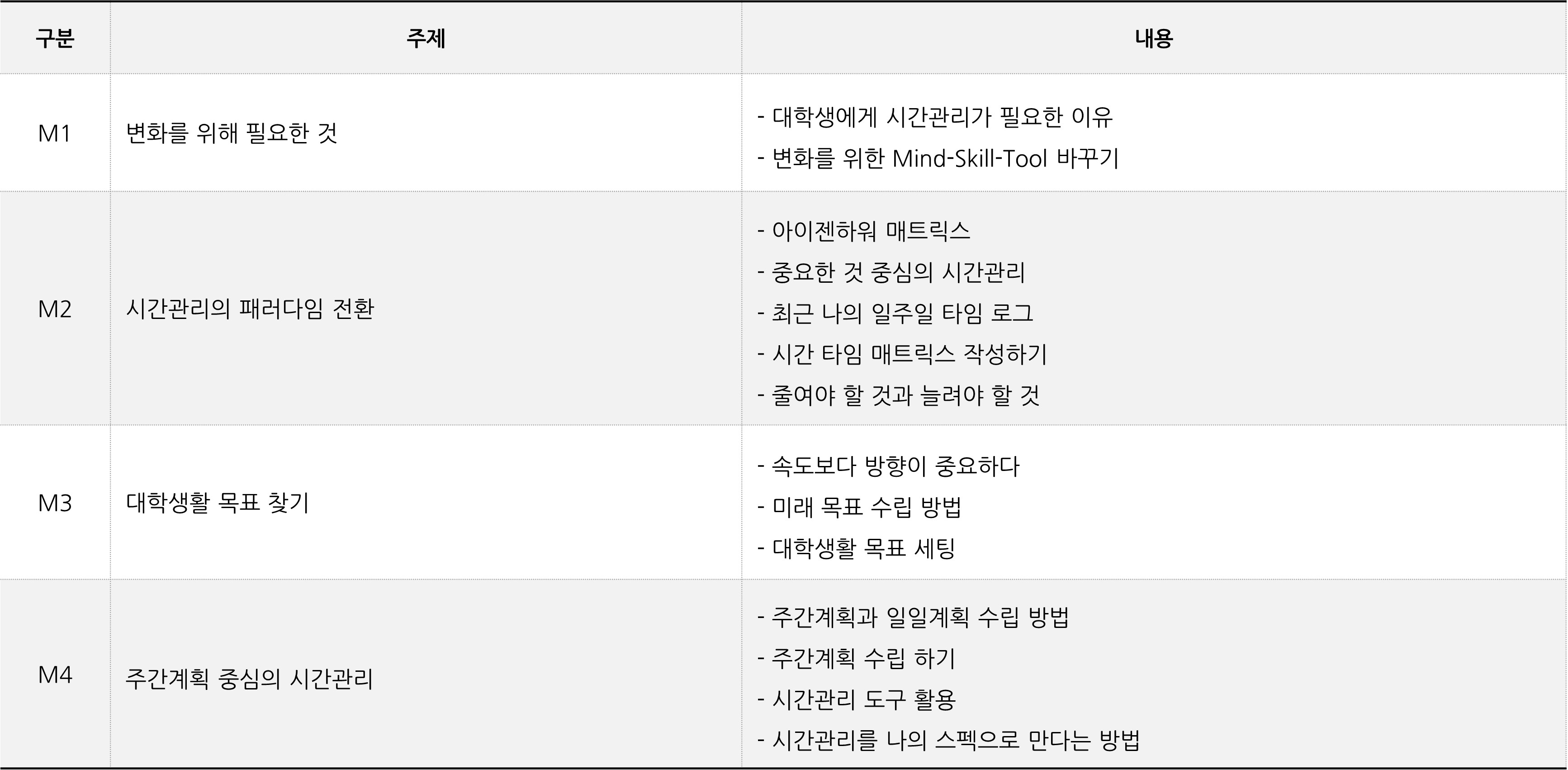 2025년 11월 중순 서울소재 한국외국어대학교 재학생을 대상으로 [대학생을 위한 시간관리 기술]을 주제로 강의를 진행하였습니다. 학교의 요청으로 온오프라인 동시에 진행되는 컨셉으로 진행되었습니다.세부 내용은 다음과 같습니다. <강의 문의>T. 070-7699-3788e-mail. kskim@learningmotive.comKakao. https://open.kakao.com/o/sKk3PVff